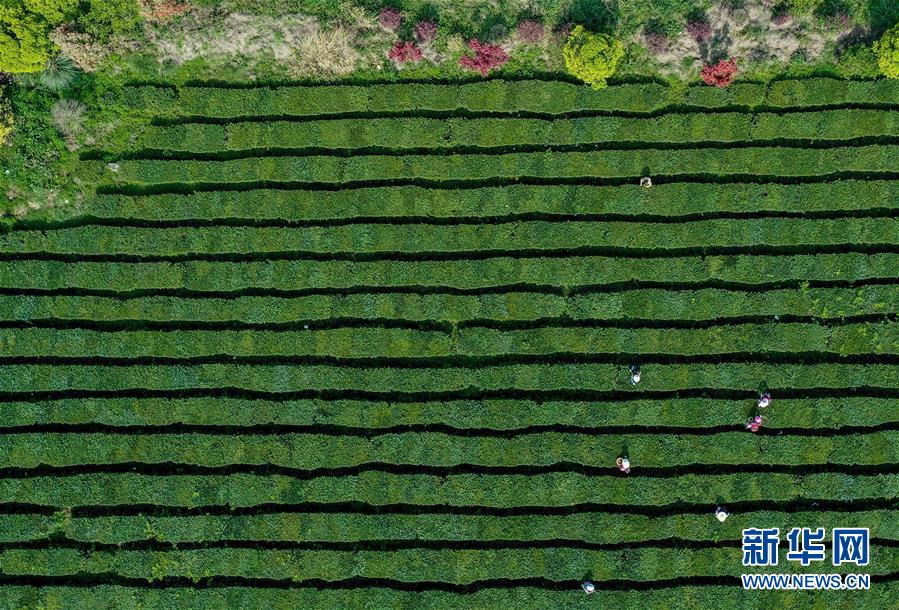 4月9日拍摄的贵州省贵安新区羊艾茶园风光(无人机照片)。新华社记者 欧东衢 摄