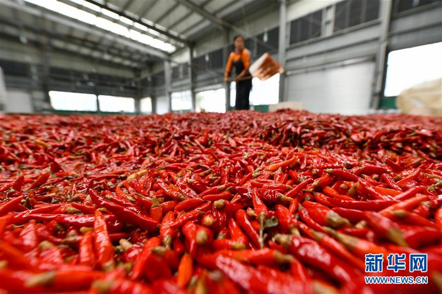 工人在贵州省遵义市新蒲新区的一家辣椒加工厂内工作(2019年1月5日摄)。新华社发(罗星汉 摄)