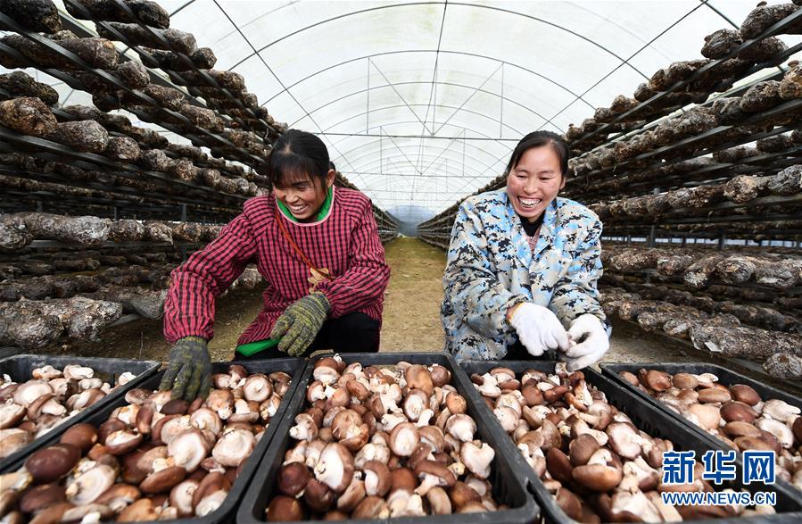 1月3日,村民在贵州省江口县闵孝镇闵家场村的一家食用菌基地分拣香菇。新华社记者 杨文斌 摄