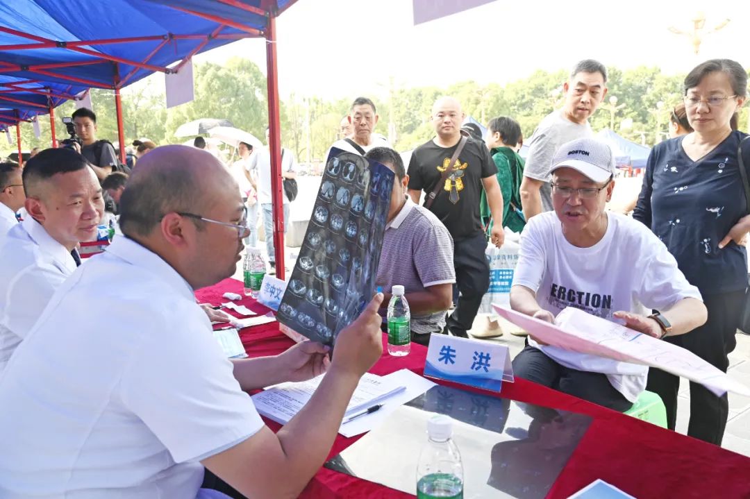 义诊现场,闻讯而来的群众携带病历资料早早前来取号排队等待就诊,专家们认真接待每一位问诊群众,帮助群众检查身体、筛查疾病,为群众提供全面的健康评估和治疗建议。