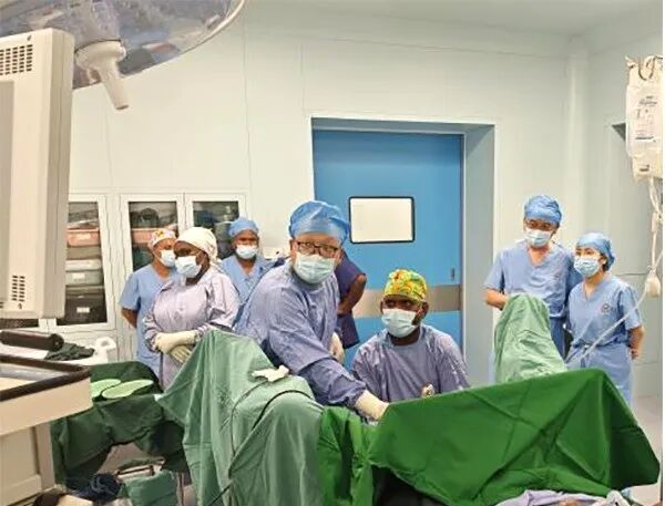 在临床指导中,输血科与检验科专家深入NRH相关科室,指导成分输血应用、实验室质量管理,并协助完成设备安装调试。急诊科专家与当地团队交流急危重症处理流程并开展床旁教学。泌尿外科团队围绕典型病例开展术前查房、手术示教与术后查房,联合完成经尿道前列腺电切术及输尿管钬激光碎石并双J管置入术等微创手术。麻醉科专家演示腰麻与全麻操作,并向NRH捐赠可视喉镜;手术室护理专家指导输液管理与器械规范使用,并参与手术配合。术后查房重点讲解恢复观察、并发症识别、管路管理及随访要点,患者恢复良好。