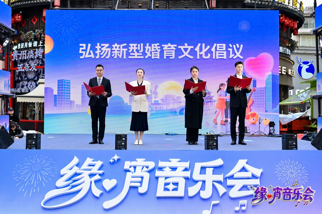 本次活动由省卫生健康委、省民政厅、省总工会、共青团贵州省委、省计生协主办,贵州广播电视台大健康事业部承办,贵阳市南明区文旅局、贵阳市南明区文化馆协办,以元宵民俗为纽带,以音乐为媒,将新型婚育文化宣传与群众喜闻乐见的形式深度融合。广大市民朋友齐聚一堂,在元宵团圆的美好氛围中,以歌为媒、以乐结缘,共度一场充满浪漫的幸福盛宴。