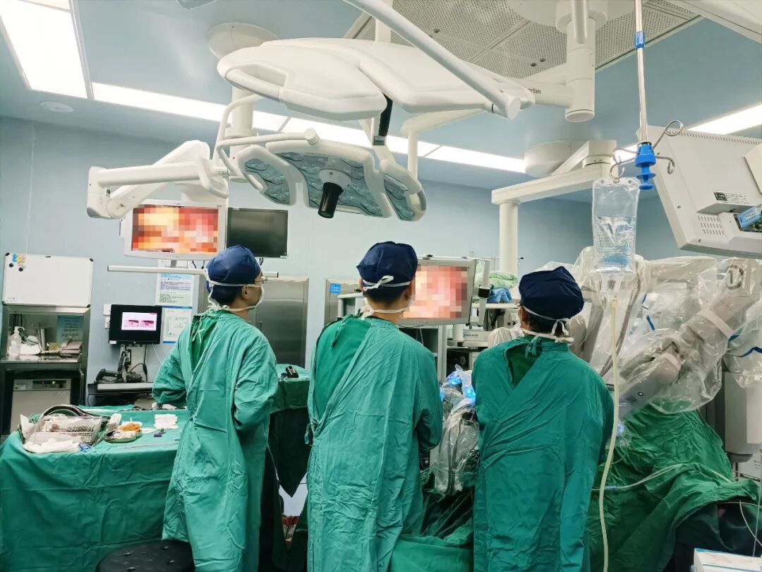 浙毕医院胃肠外科手术团队在浙江省人民医院第二批派驻专家的带领下,成功为一名患者完成机器人辅助乙状结肠恶性肿瘤切除术。