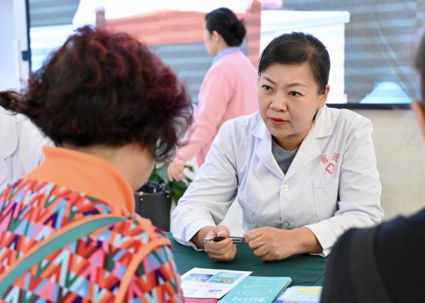 义诊现场,胡晓为前来咨询的患者答疑解惑
