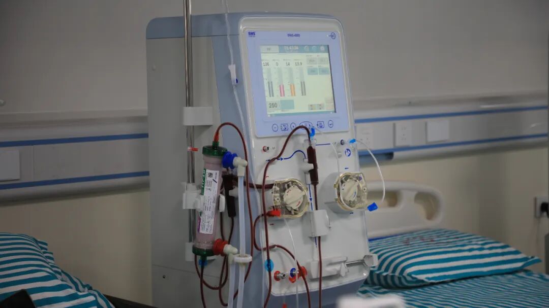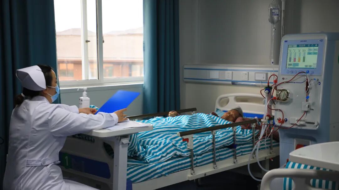 “目前我们配备了10台血透机,分两班轮转每天可为40名血透患者提供服务。”