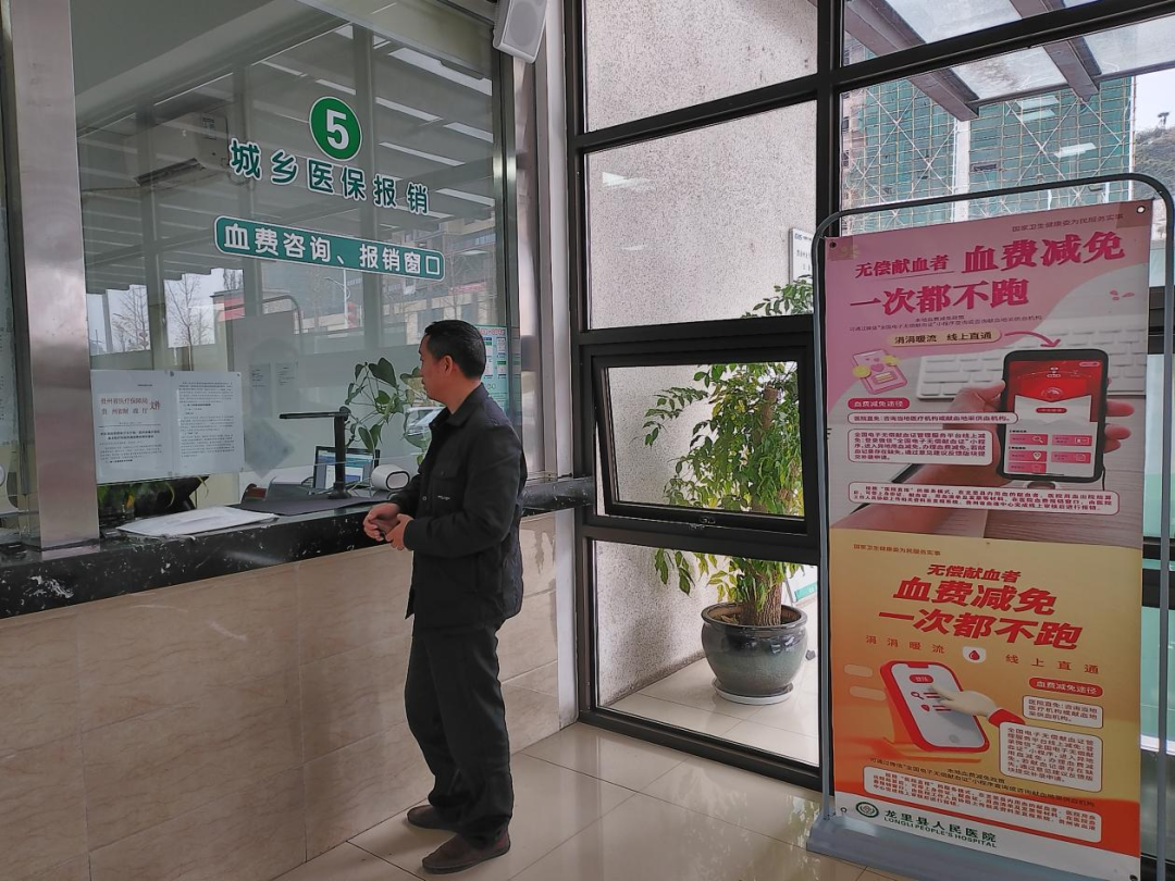 王先生在龙里县人民医院血费报销窗口办理报销手续