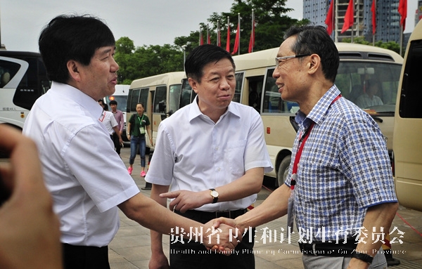 省卫生计生委主任王忠(左一)、副主任张光奇(中)、中国工程院院士钟南山(右一)