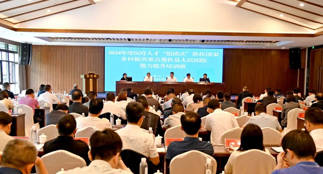 6月5日,贵州省卫生健康委在正安县举办医疗人才“组团式”帮扶国家乡村振兴重点帮扶县人民医院能力提升培训班,总结医疗人才“组团式”帮扶阶段性成效,对深化“组团式”帮扶工作再动员、再部署、再推进。贵州省卫生健康委主任孙发,广东省卫生健康委副主任汪洪滨出席开班式并讲话;贵州省卫生健康委副主任陶晔璇主持开班式,遵义市人民政府副市长明岩致辞,贵州省委组织部组织二处处长严俊出席开班式并讲话。