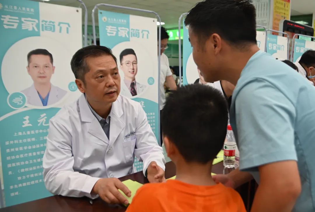 当天,上海儿童医学中心贵州医院、贵州省人民医院到从江县人民医院开展义诊。上海儿童医学中心贵州医院副院长王元林、汪希珂率领的专家团队为从江人民送医送健康。“这次参加义诊的专家涉及小儿泌尿外科、儿童骨科、儿童普外科疾病、儿童神经发育障碍性疾病、儿童保健及发育行为、儿童血管疾病及遗传代谢疾病等多个学科。”王元林介绍,建设国家区域医疗中心主要目的之一就是要让优质医疗资源离老百姓更近。“今天正好是‘七一’,希望通过我们的义诊,让从江的父老乡亲感受到党和国家大力发展卫生健康事业带来的福祉。”