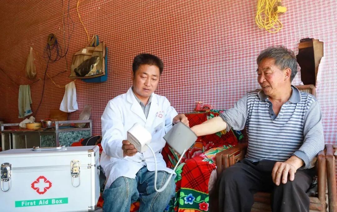 在大街乡金星村群众家中,家庭签约医生为患者提供上门诊疗服务。