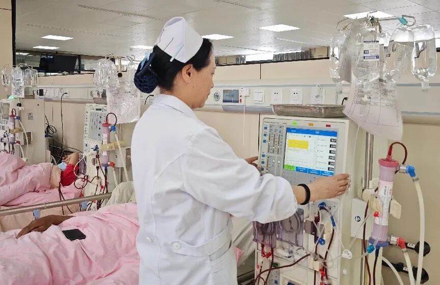 在血液透析室这个与死神博弈的特殊战场,我用专业与温情为武器,守护着患者的“生命线”。透析患者是特殊群体,每周1-3次的透析治疗是他们赖以维持生命的坚持,每次治疗前后对患者评估问候是血透护士的职责,简单的一句询问“是否有哪里不舒服啊?”患者也心感安慰。当患者完成透析后,轻松、舒服、平稳地踏出血透室大门,我心中充满了成就感。