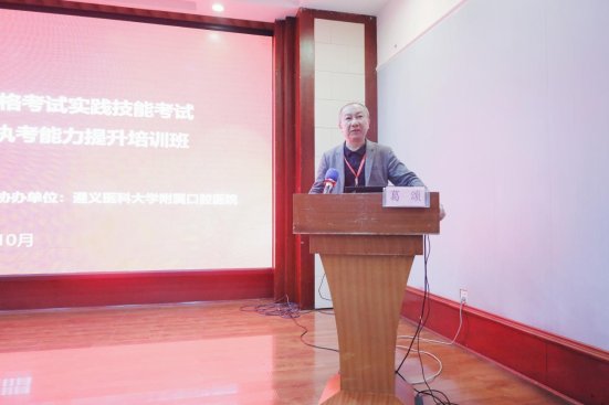 遵义市卫生人员教育考试中心主任李亦农,贵州省口腔类别首席考官、我院党委副书记、院长、考试基地主任葛颂教授出席了10月30日上午举行的开班仪式。开班仪式由考试基地副主任陈征昊主持。